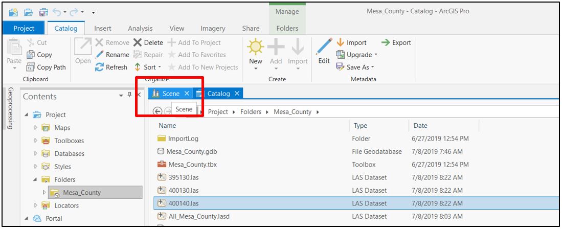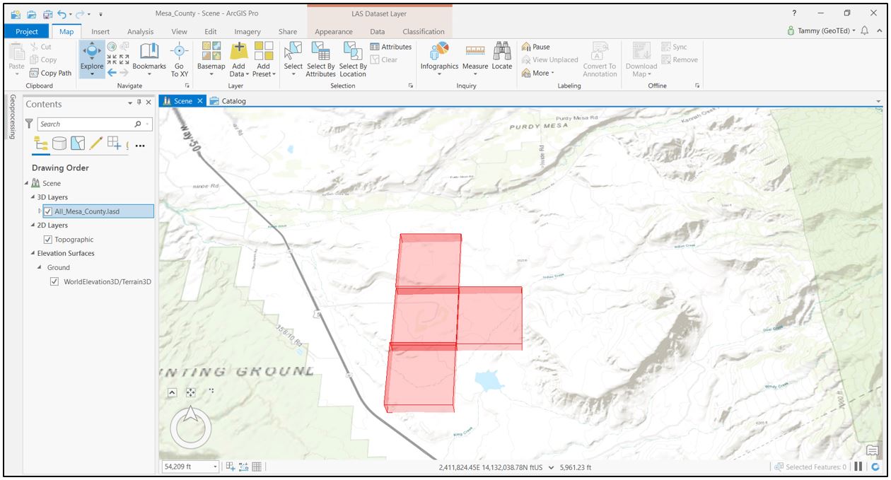 Create a new local scene for Mesa County lidar data. Add the three separate tiles downloaded in Chapter 7. Locating Lidar Data (Figure 14.1).