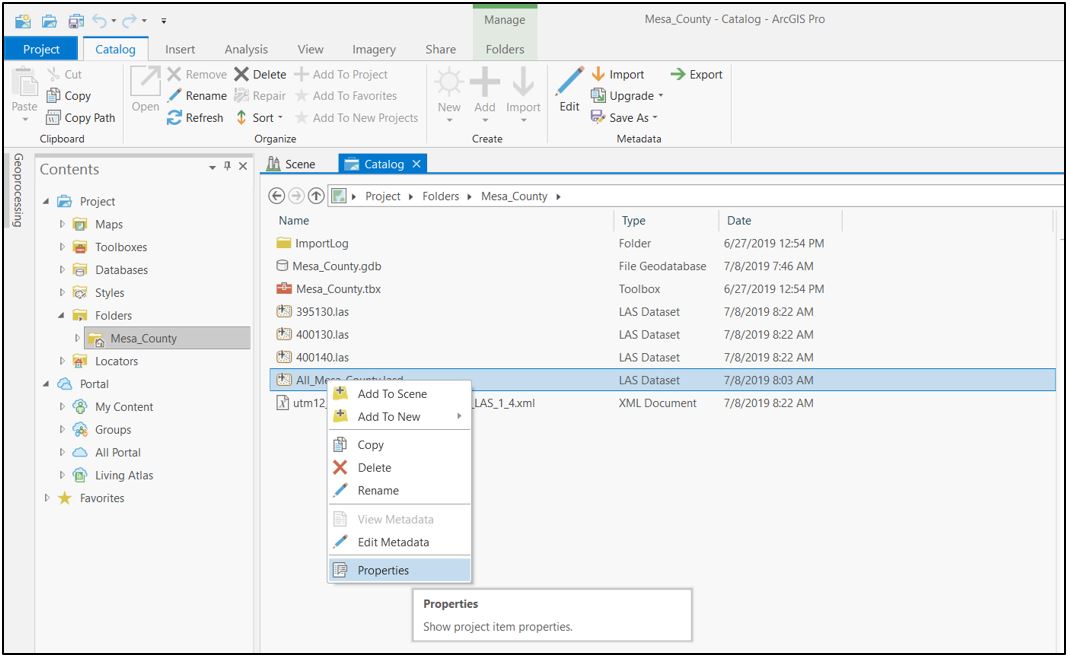 Open Catalog View, locate the combined .lasd dataset created above, right-click on the dataset name and select Properties (Figure 14.6).