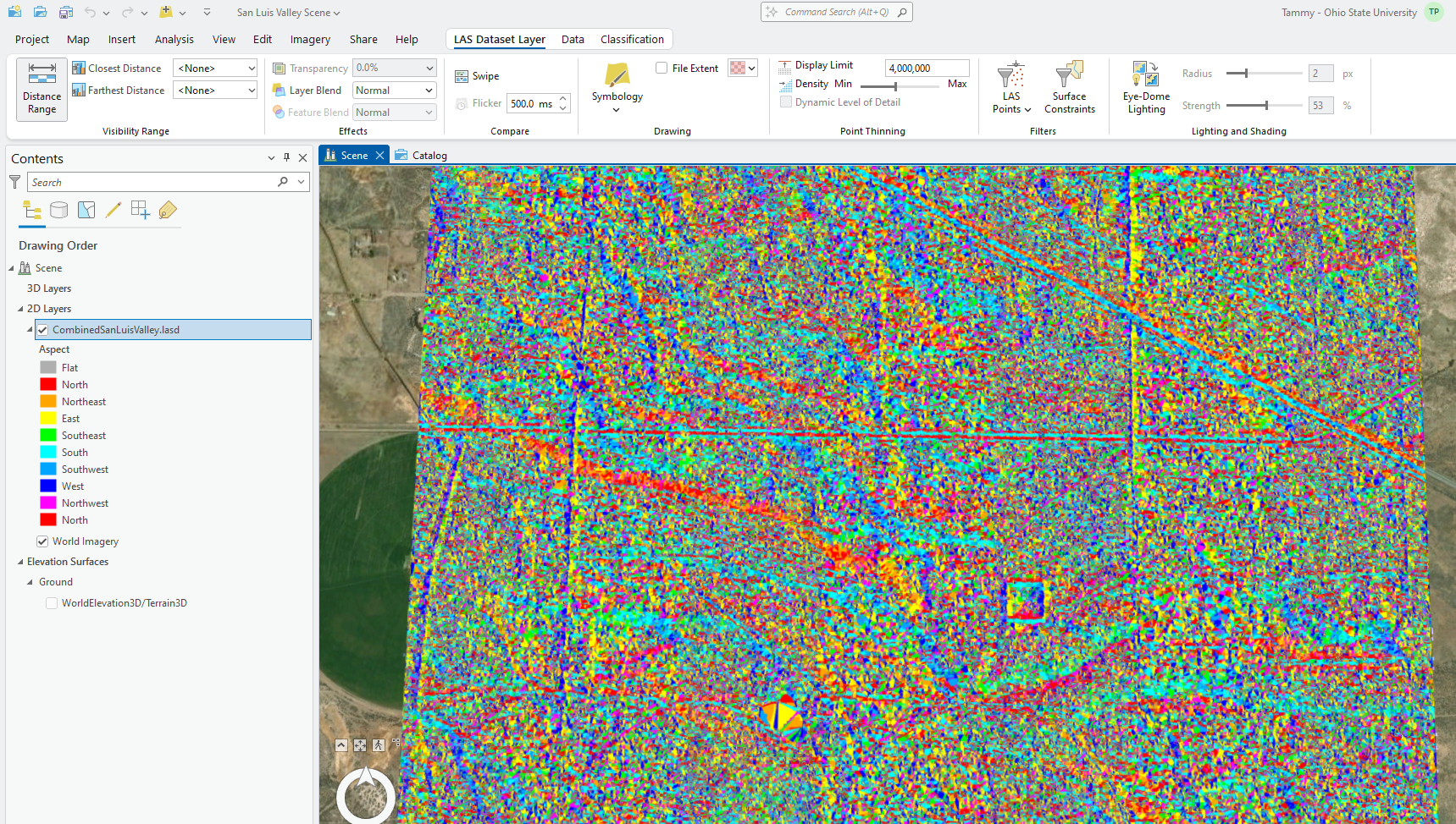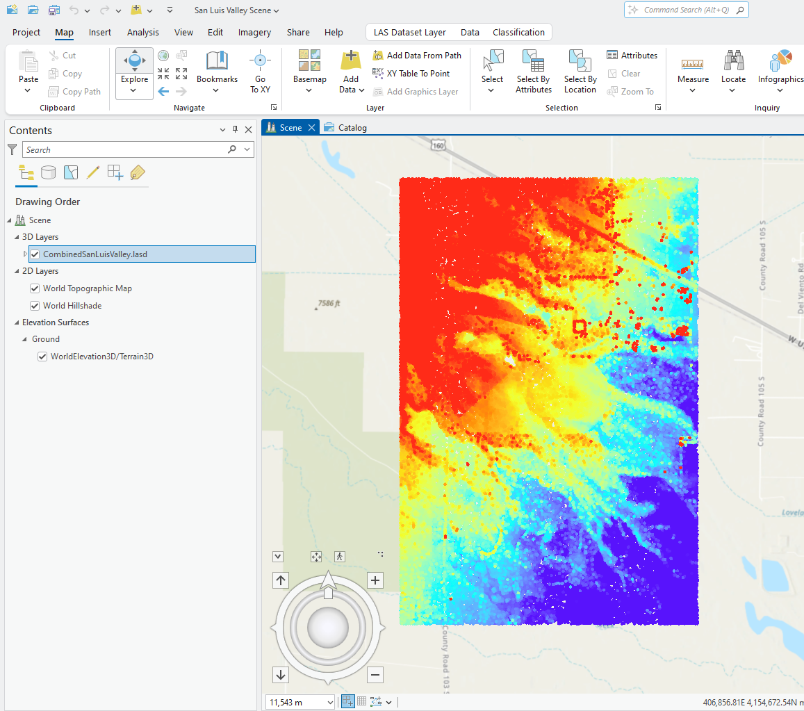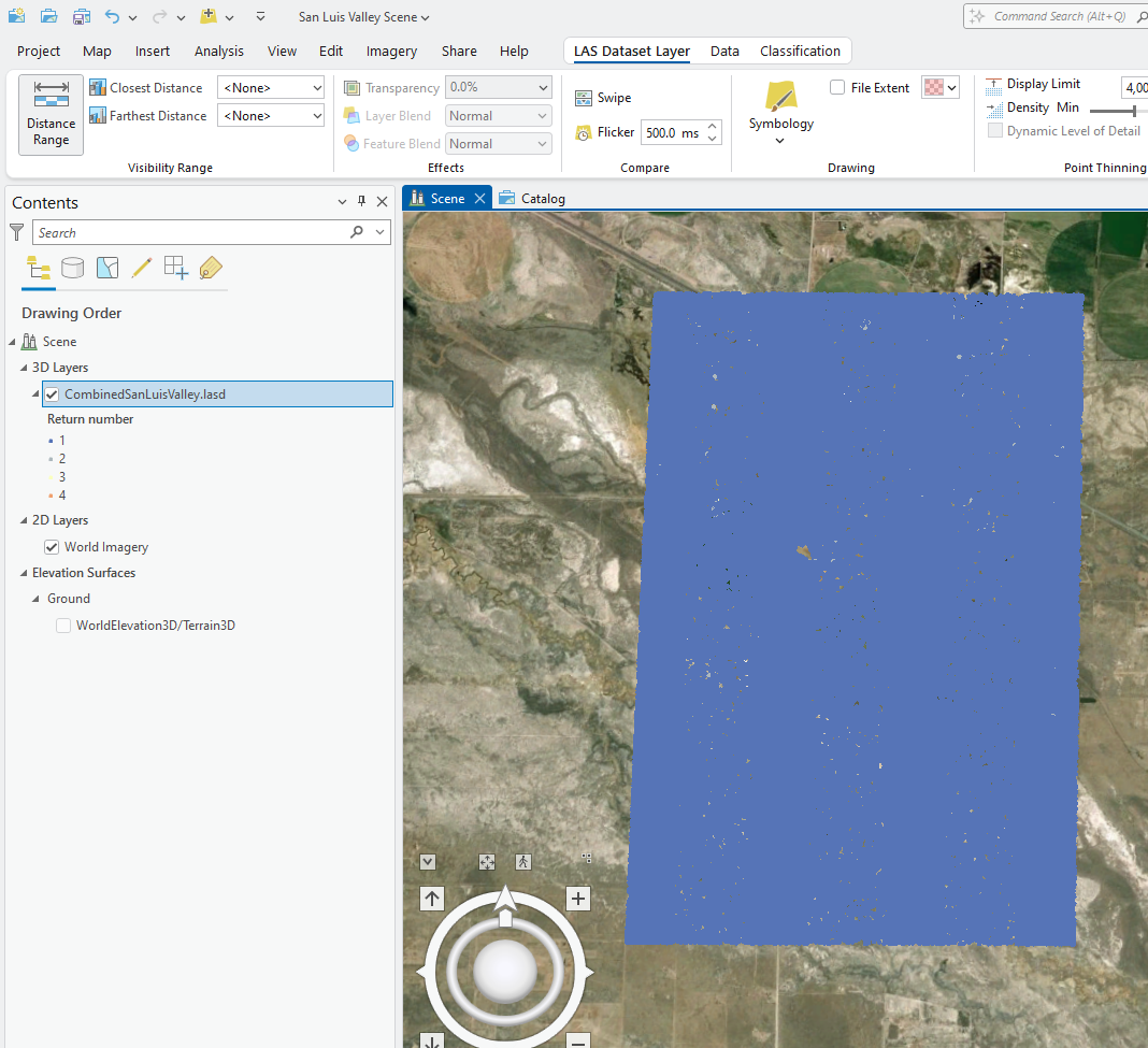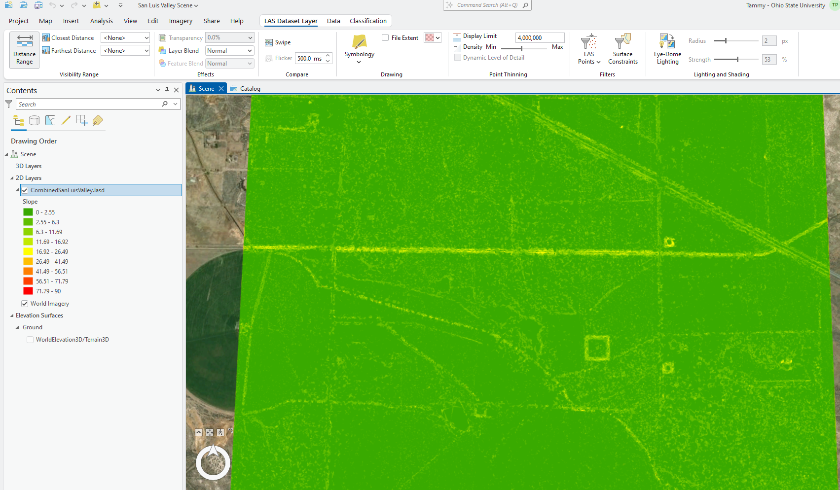 Open the San Luis Valley scene created in Chapter 13. Combining Tiles into One .lasd Dataset (Figure 16.1).