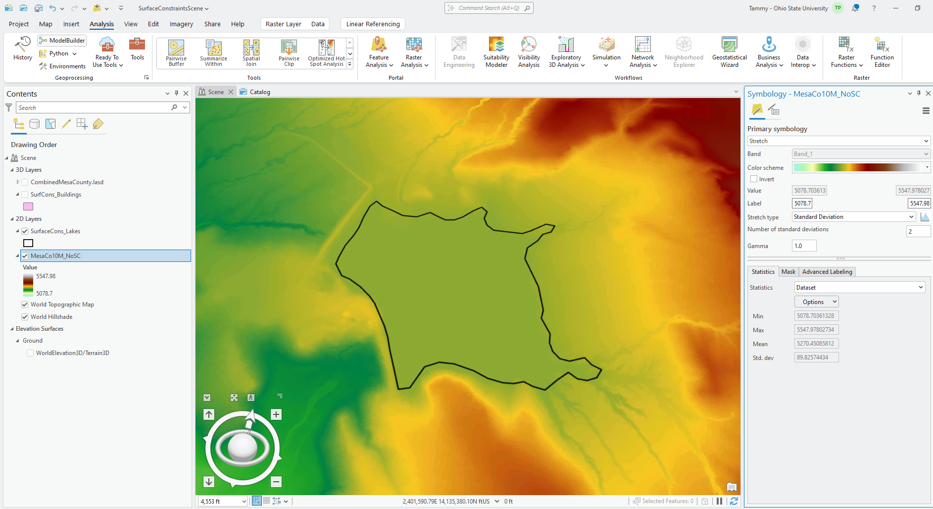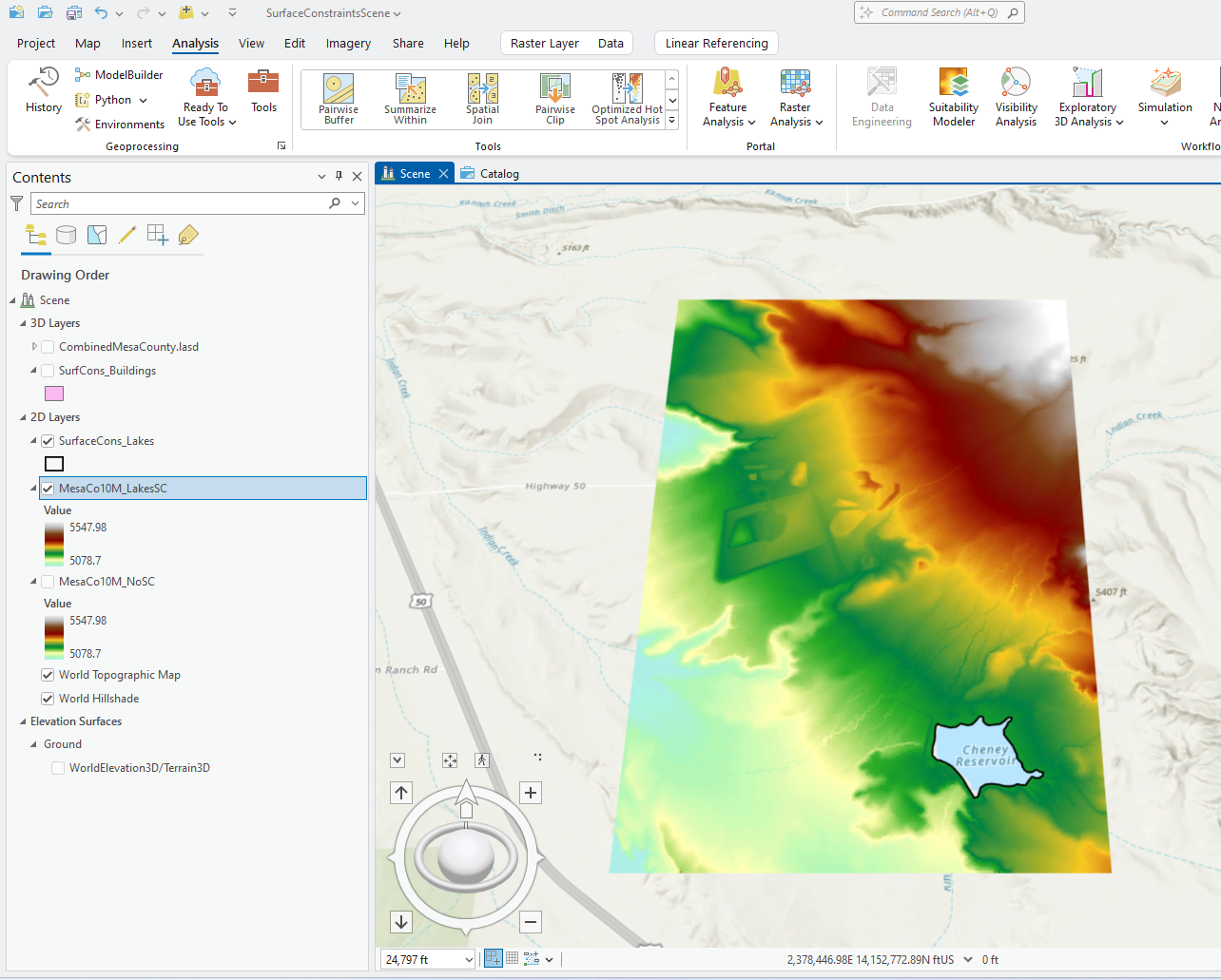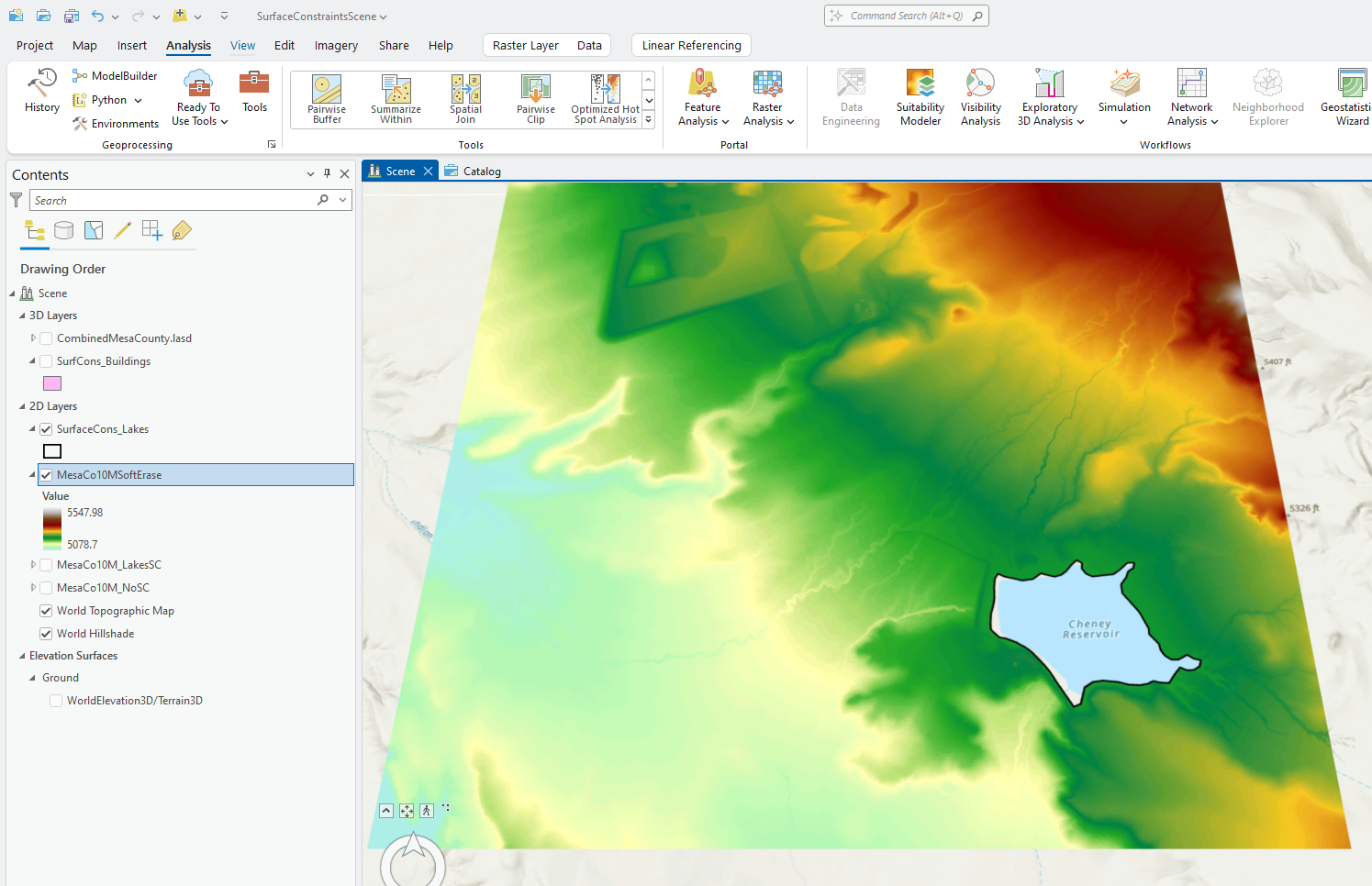 This chapter was strictly demonstrating the step-by-step process for using surface constraints. It does not demonstrate any additional surface constraint types or any other type of GIS analyses that can be generated with surface constraints and a LAS dataset.