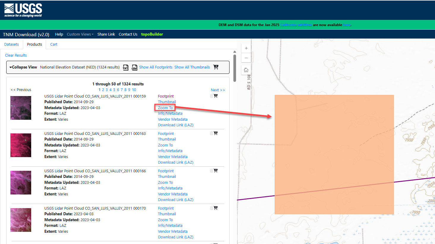 1. You can also search using the entire product identifier if you are not zoomed in to San Luis Valley.