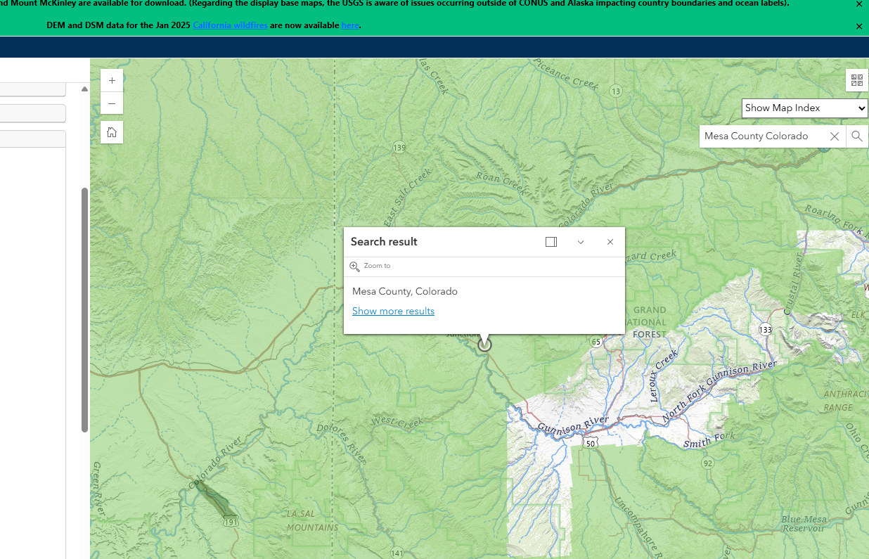 A search can be accomplished in multiple ways. Let’s start with a location by entering “Mesa County, Colorado” in the search bar of the map viewer. The map viewer zooms to the location (Figure 8.6).